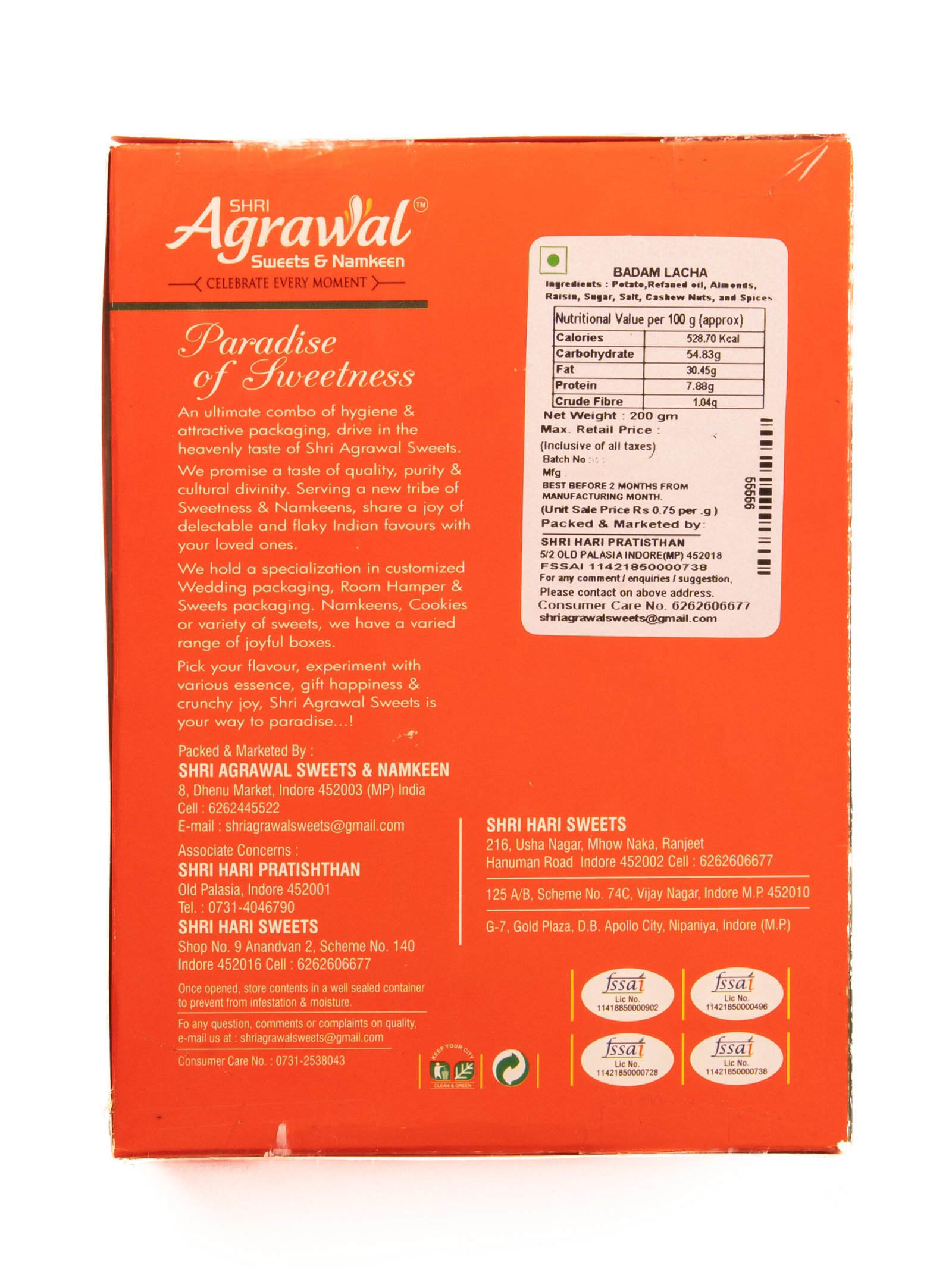 A Falahari Offering from Agrawal Sweets, Badam Lachha is a mixture made of Badam (Almonds) and Potato. The mixture is rich in taste since only best of spices and condiments are used and leave an unforgettable mark with the consumer.
